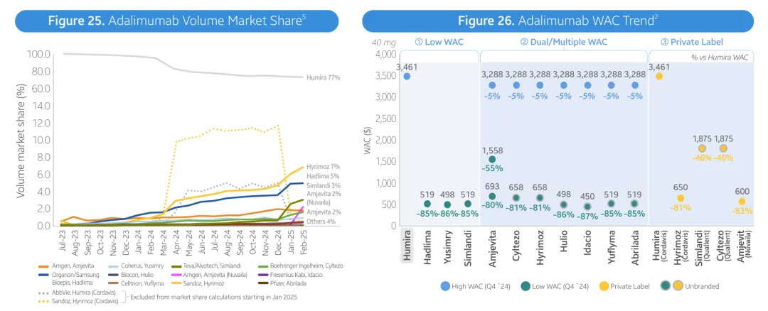 具体而言,2025年第一季度,随着原研药喜达诺(Stelara)专利到期,其生物类似药正式进入市场,且批发采购成本(WAC)较原研药降价超80%。毫无疑问,这是要用地板价轰开市场大门。