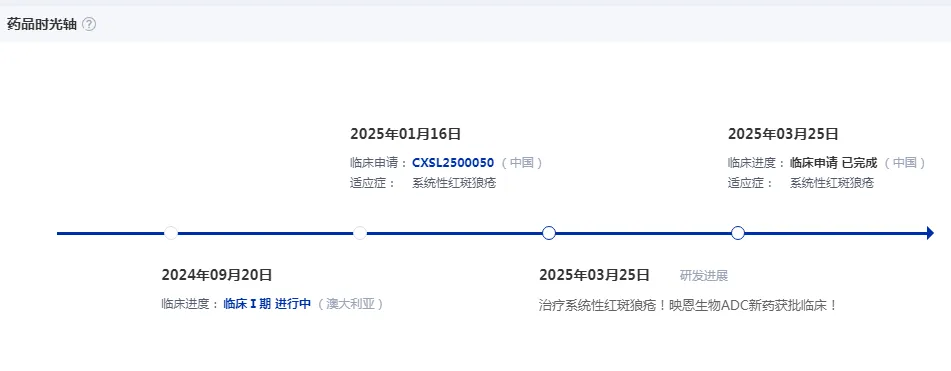 根据药智数据,映恩生物已于2024年在澳大利亚启动了DB-2304的1期临床研究,今年在国内也获批了临床,适应症为系统性红斑狼疮。