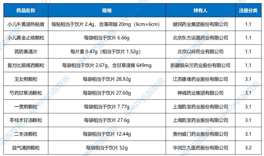 10个中成药品种中,包括4个1类创新药和6个古代经典名方,均为国产药品。