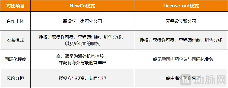 与传统的license-out相比,NewCo模式最为明显的差异就在于买卖双方更深度的绑定。因为它完全脱离主体,需要重新成立一家新的公司,并由买卖双方共同运营,这与license-out将所有决定权都交由MNC显然更加合理,其不仅可以规避风险,同时也可以将利益最大化和长期化。