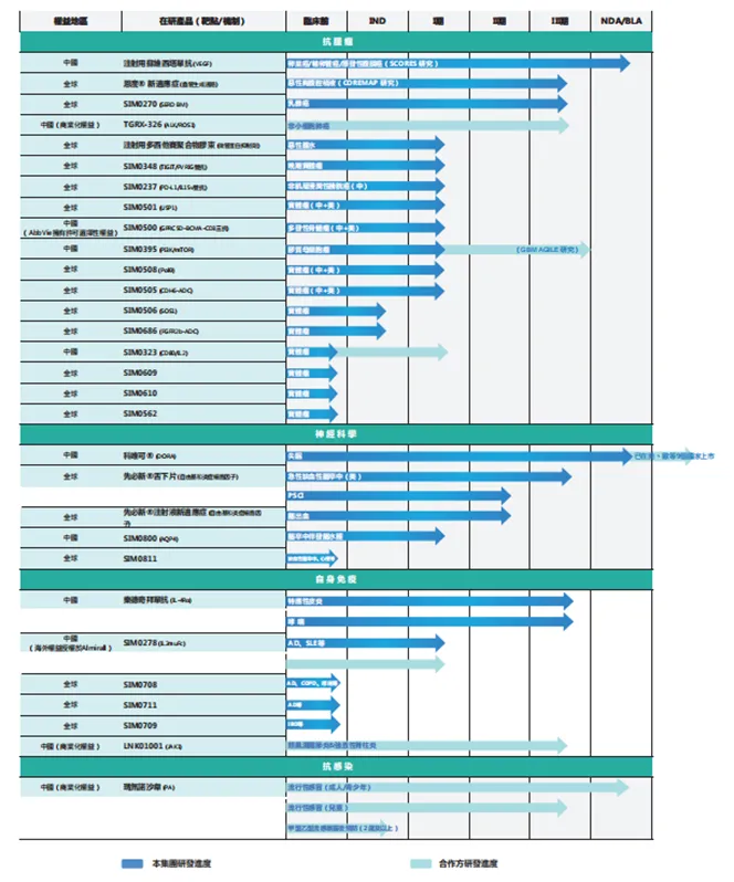 早期项目中,SIM0237(PD-L1/IL-15融合蛋白)、SIM0348(TIGIT/PVRIG双抗)、SIM0235(TNFR2单抗)、SIM0501(USP1抑制剂)、SIM0508(Polθ抑制剂)、SIM0505(CDH6 ADC)则具有较强的想象力。