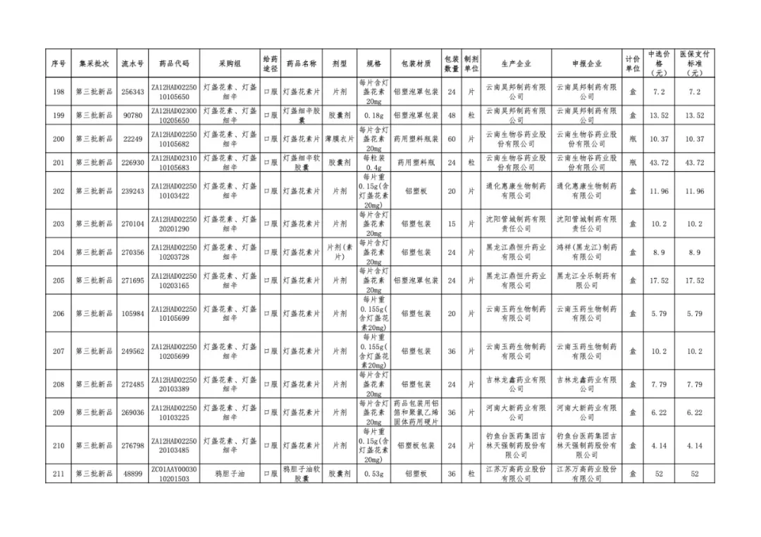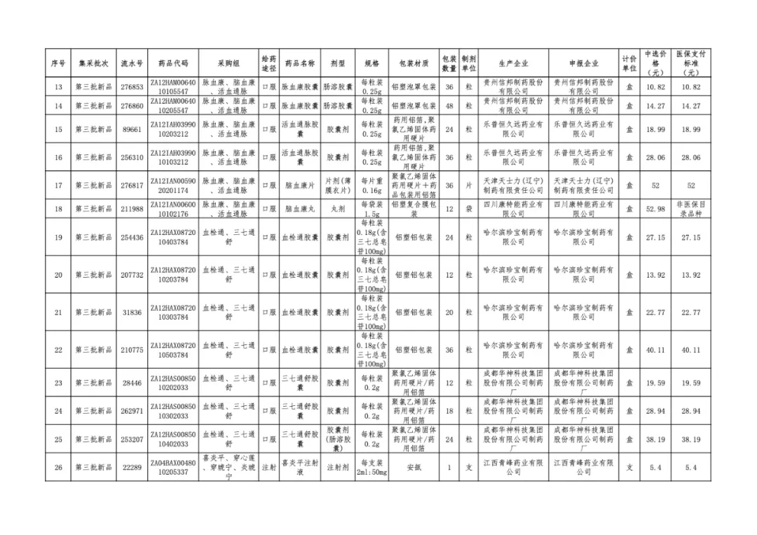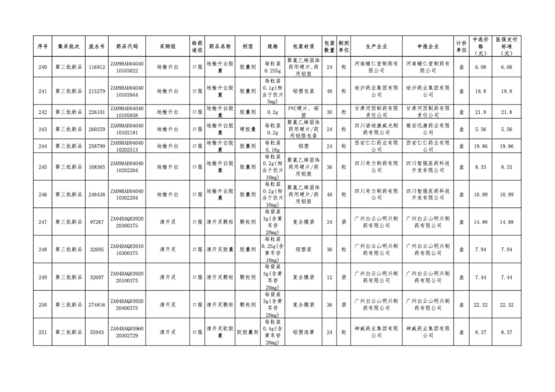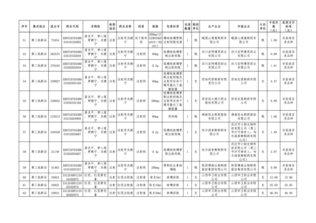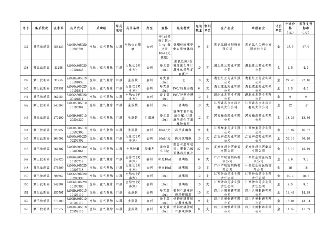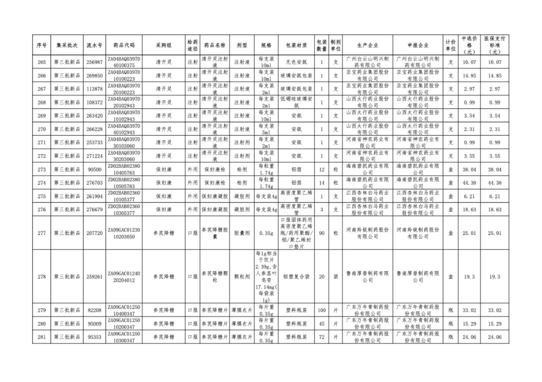 另外根据湖北官方发布的消息,独家药品拟中选率约33%,包括白云山的清开灵颗粒、青峰的喜炎平注射液、太极的益气复脉颗粒等最终中选——在第三批全国中成药集采的95个产品中,独家品种达38个。