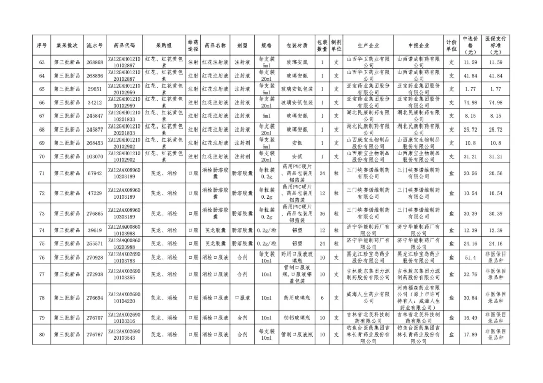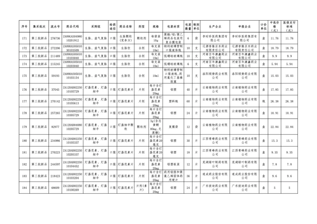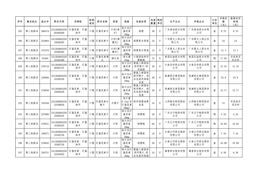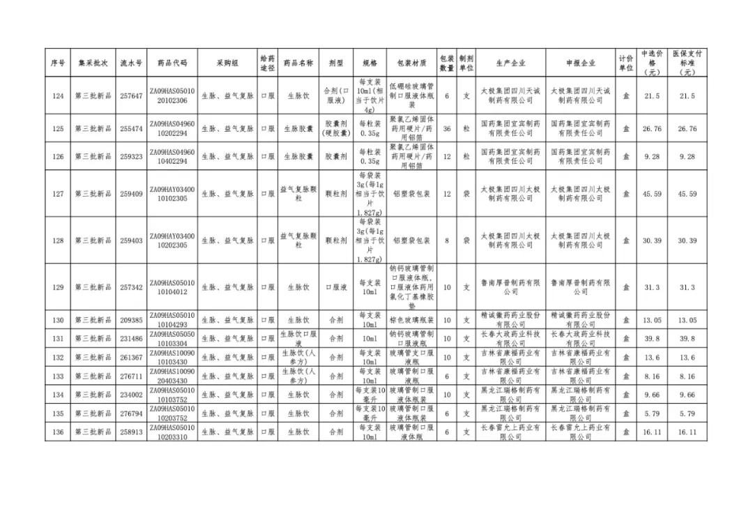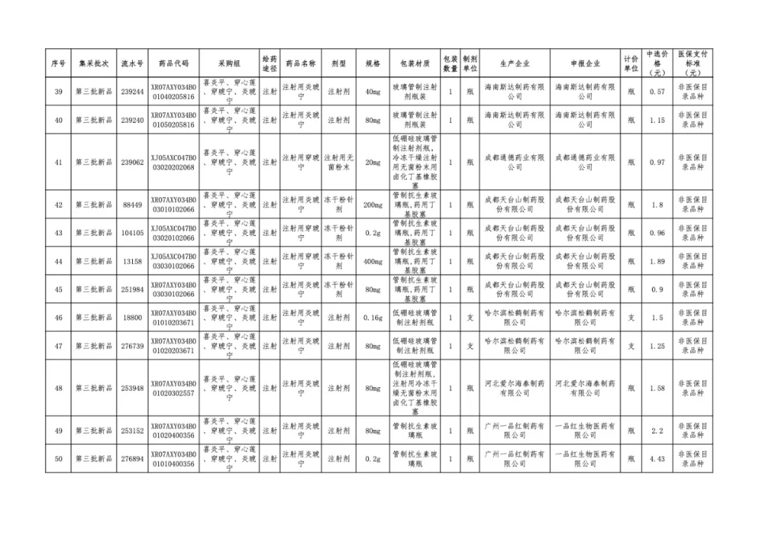 另外根据湖北官方发布的消息,独家药品拟中选率约33%,包括白云山的清开灵颗粒、青峰的喜炎平注射液、太极的益气复脉颗粒等最终中选——在第三批全国中成药集采的95个产品中,独家品种达38个。