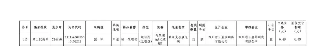 附:全国中成药采购联盟中选企业供应清单(仅包括313个第三批新品品规)