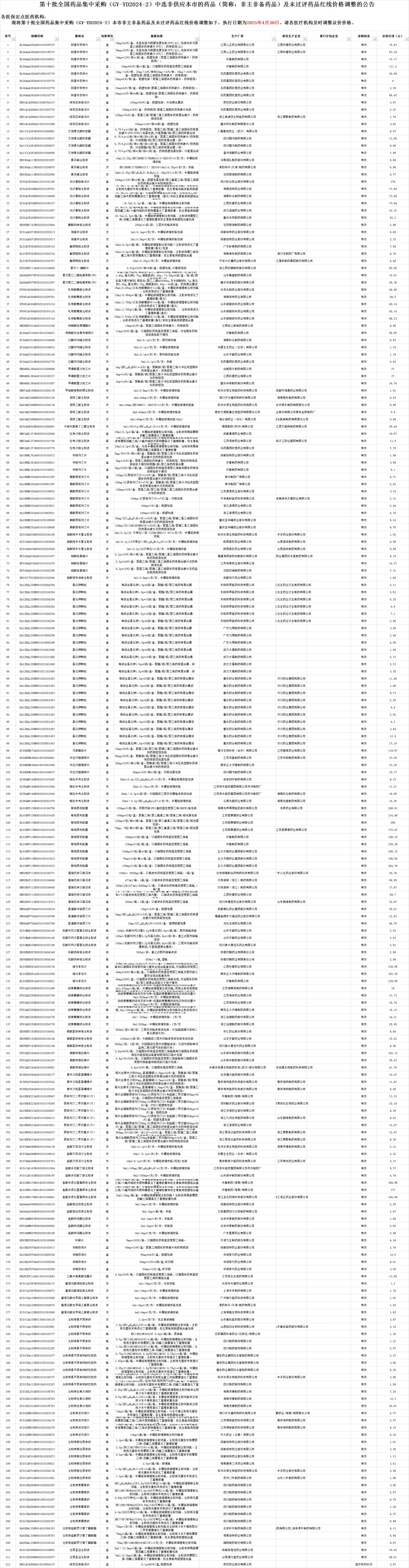 《第十批全国药品集中采购(GY-YD2024-2)中选非供应本市的药品及未过评药品红线价格调整的公告》(图源:华招网)
