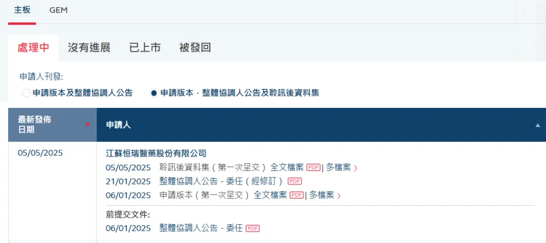 5月5日,港交所官网显示,江苏恒瑞医药股份有限公司(以下简称“恒瑞医药”)通过聆讯,即将上市,摩根士丹利、花旗和华泰国际为联席保荐人。