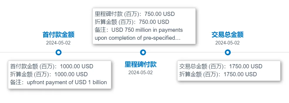 图1. Mariana Oncology Inc和诺华收购协议相应款项,来源:药渡数据-全球药物库