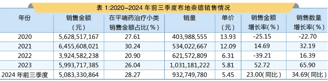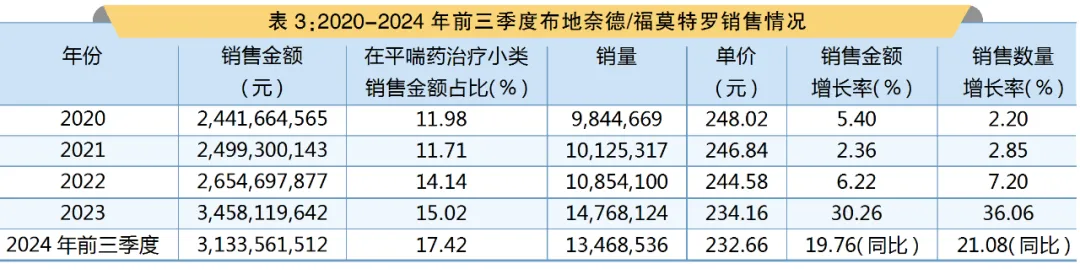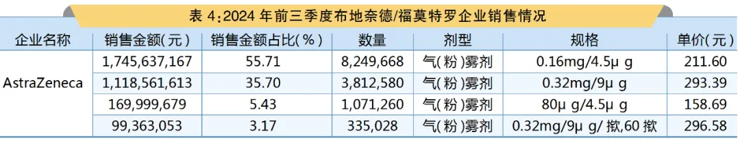 PDB数据显示,在2024年前三季度,国内全渠道布地奈德/福莫特罗制剂销售额为31.34亿元。