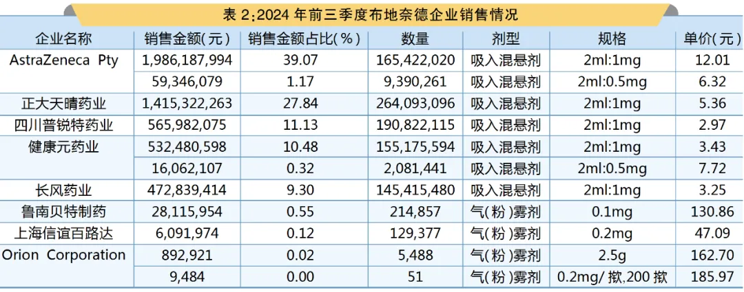 PDB数据显示,在2024年前三季度,国内全渠道布地奈德气(粉)雾剂和吸入混悬剂销售额为50.83亿元。