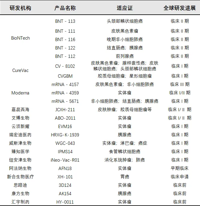 全球mRNA肿瘤疫苗研发管线/图片来源:公开资料整理
