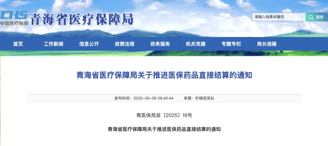 5月9日,青海在《青海省医疗保障局关于推进医保药品直接结算的通知》青医保局发〔2025〕19号中提出: