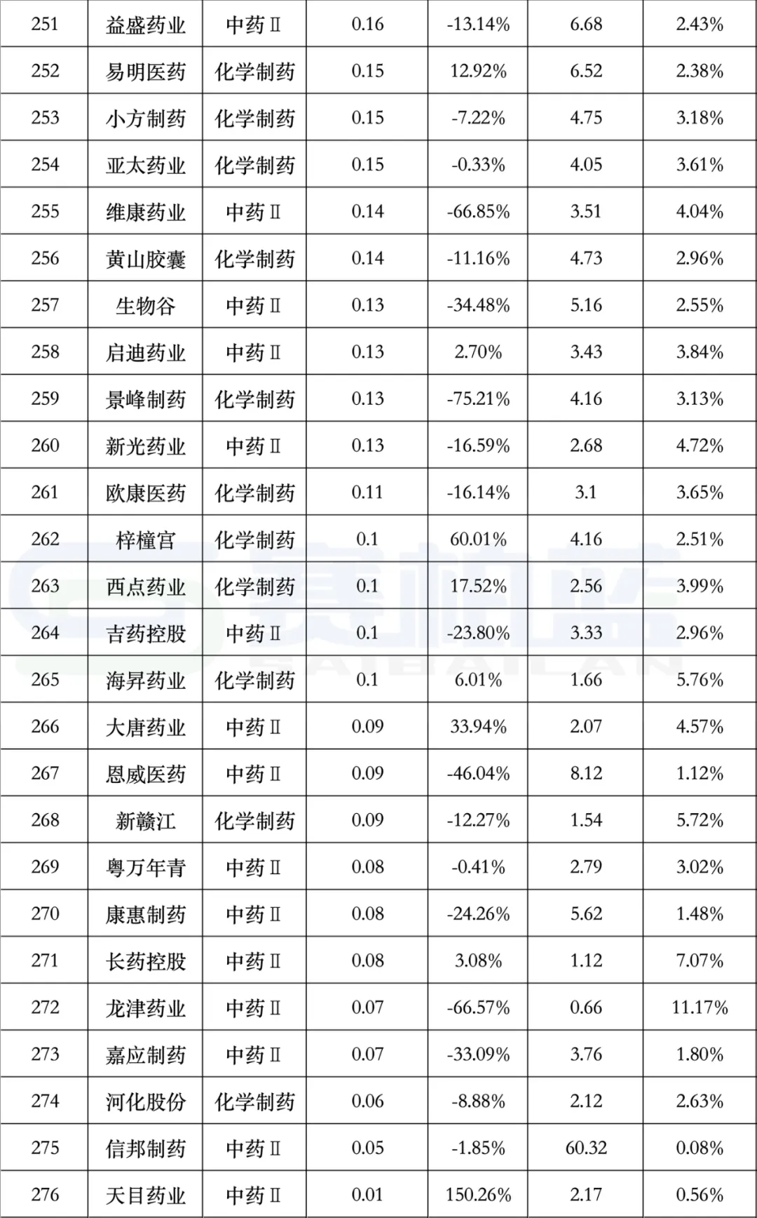 中药II统计到上市公司70家,2024年合计营业收入3512亿元,同比下降4.88%,研发投入费用共计104亿元,同比微增0.09%,研发投入强度2.96%;是三类中研发投入强度最低的一类。