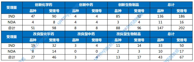 以注册分类统计,1类创新型新药完成审批150个品种,IND申请完成审批143个品种,NDA申请7个品种,批准率均为100%。2类改良型新药完成审批57个品种,IND申请完成审批44个品种,NDA申请完成审批13个品种,批准率均达100%。中药3类经典名方完成审批4个品种,批准率为75%。