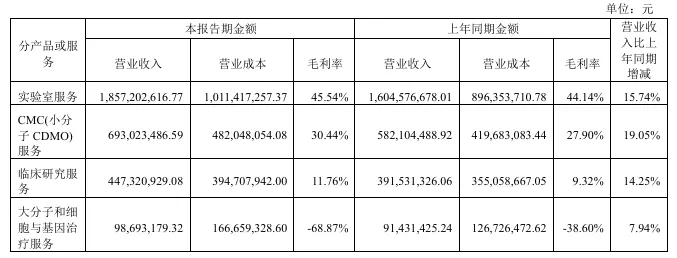 图为康龙化成2025年第一季度的主要财务数据和指标:
