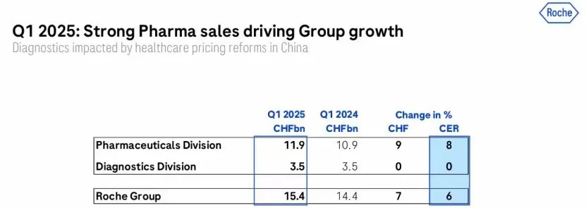 下图为罗氏2025年第一季度的主要财务数据和指标:
