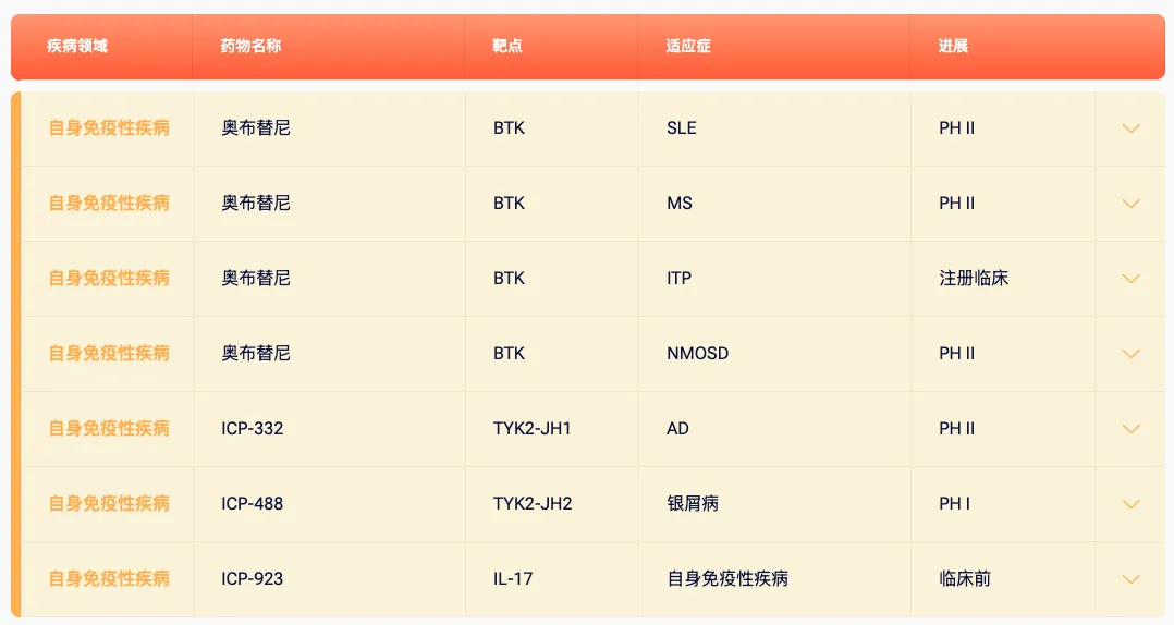 诺诚健华自免管线布局情况