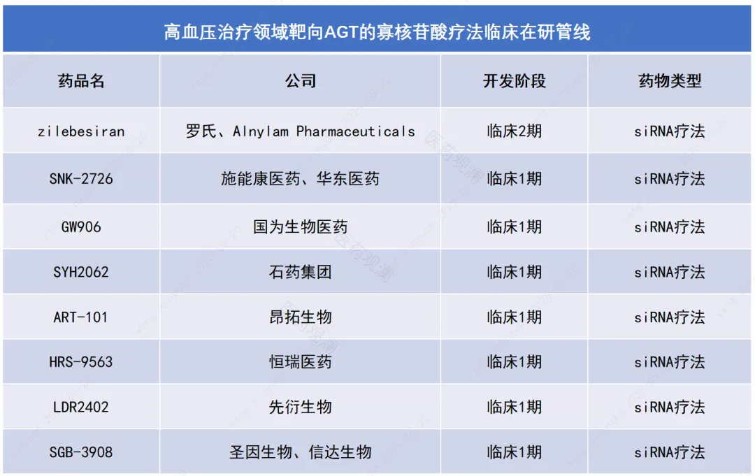 有望发挥长效降压潜力,全球十多款寡核苷酸新药管线已进入临床