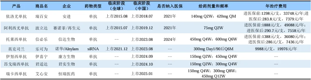 PCSK9是继他汀类药物之后最具潜力的降脂靶点,目前已取得巨大成功。截至2025年1月,国内已批准7款PCSK9抑制剂,其中包括6款单抗和1款小干扰RNA(siRNA)疗法。