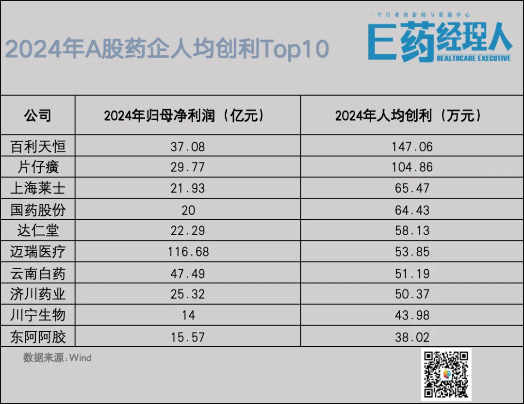 成本优势与龙头效应的叠加下,2024年川宁生物营收为57.58亿元,同比增长19.38%;归母净利润14亿元,同比增长48.88%;人均创利约43万元,位列榜单第九。