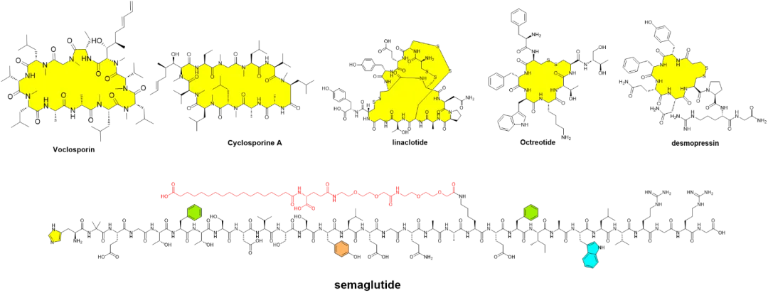 图1. 部分上市口服多肽化学家结构