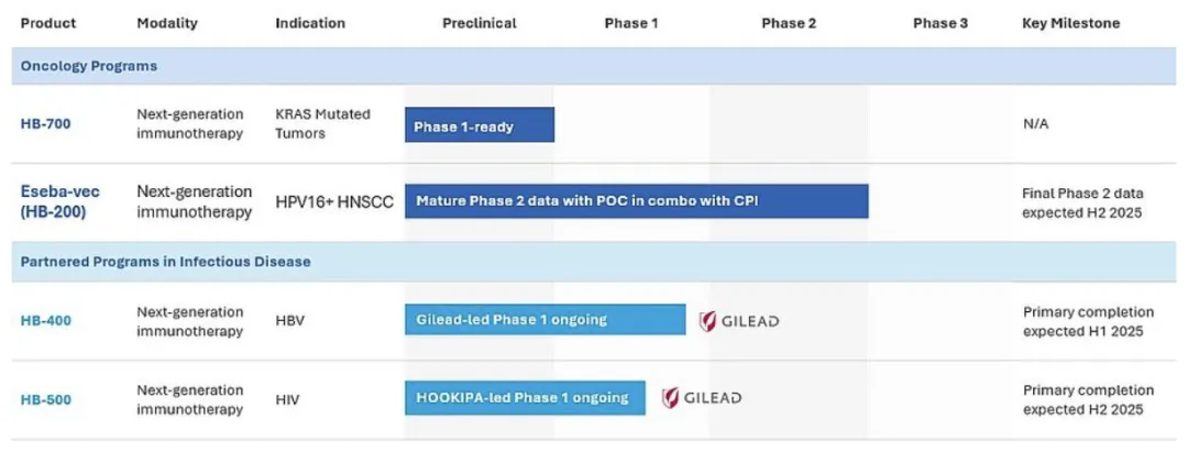 图1:Hookipa Pharma的在研管线