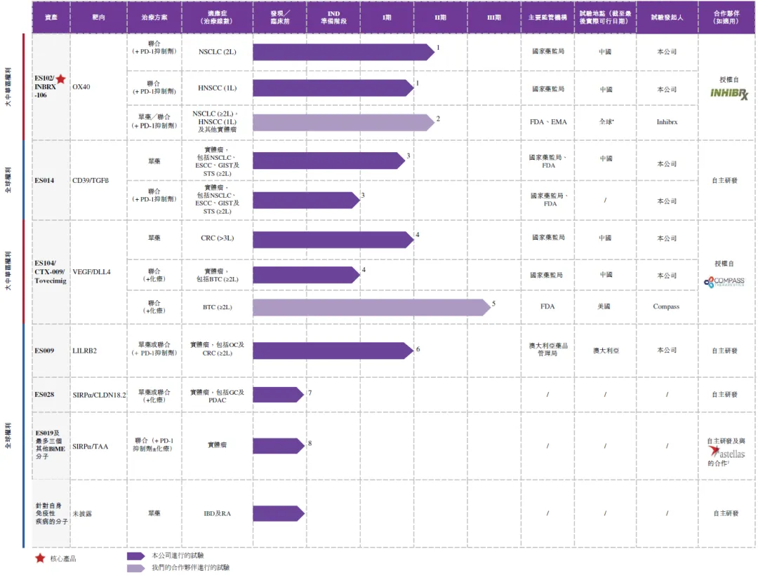 ES009:一款具有“同类最佳”创新潜力的LILRB2单克隆抗体,可通过对抑制性髓系细胞进行重编程,建立有利于肿瘤免疫的肿瘤微环境(TME)。目前处于1期临床阶段。