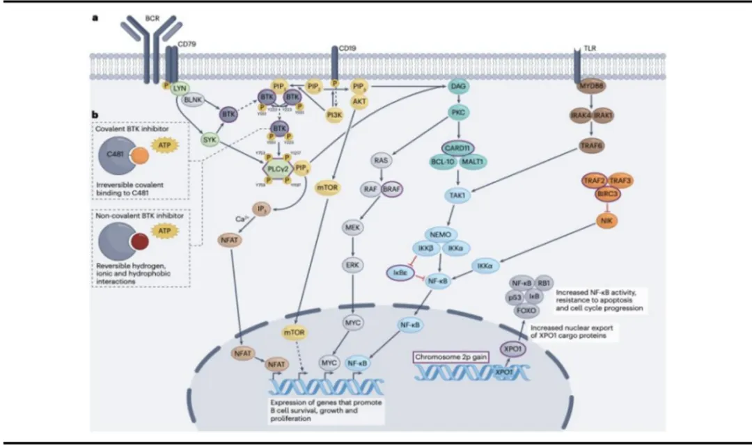 CLL/SLL属B细胞非霍奇金淋巴瘤(B-NHL),是一种治疗后易复发的血液系统恶性肿瘤。在现有的B-NHL治疗药物中,布鲁顿氏酪氨酸激酶(BTK)抑制剂虽对部分B-NHL亚型临床有效,但耐药性是临床一大难题,亟需新的治疗手段。目前研究发现,耐药主要由C481X BTK突变和和非BTK依赖性BCR信号通路激活这两种机制引发。
