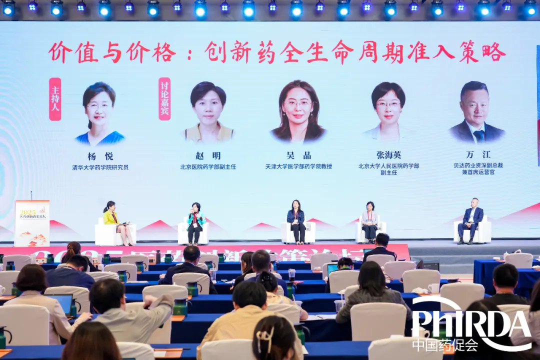 在杨悦教授的主持下,中国药促会医药政策专委会委员、北京医院药学部副主任赵明,吴晶教授,北京大学人民医院药学部副主任张海英以及政策专委会副主委、贝达药业资深副总裁兼首席运营官万江,围绕“价值与价格:创新药全生命周期准入策略”话题展开第一阶段讨论。嘉宾一致认为,价格影响用药,同时临床所产生的真实世界数据亦能证明药品价值,影响药价,两者之间存在联动关系。嘉宾提醒“药品价值”这一理念需要提前到研发前段和临床试验设计端。同时,建议通过深化医保谈判动态机制、完善商业健康保险产品创新,构建更具可持续性的价值回报体系,推动中国创新药产业的高质量发展。
