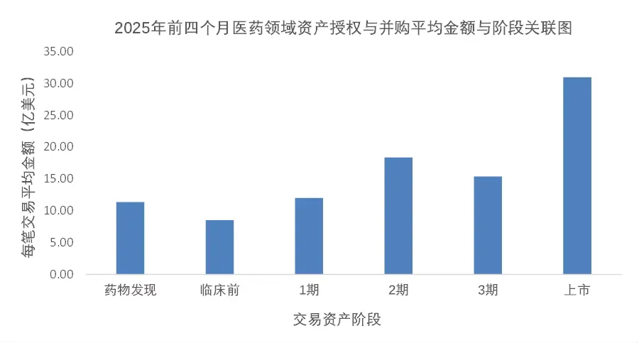 图5. 2025年前四月大型制药公司资产交易数量与金额的阶段关联图