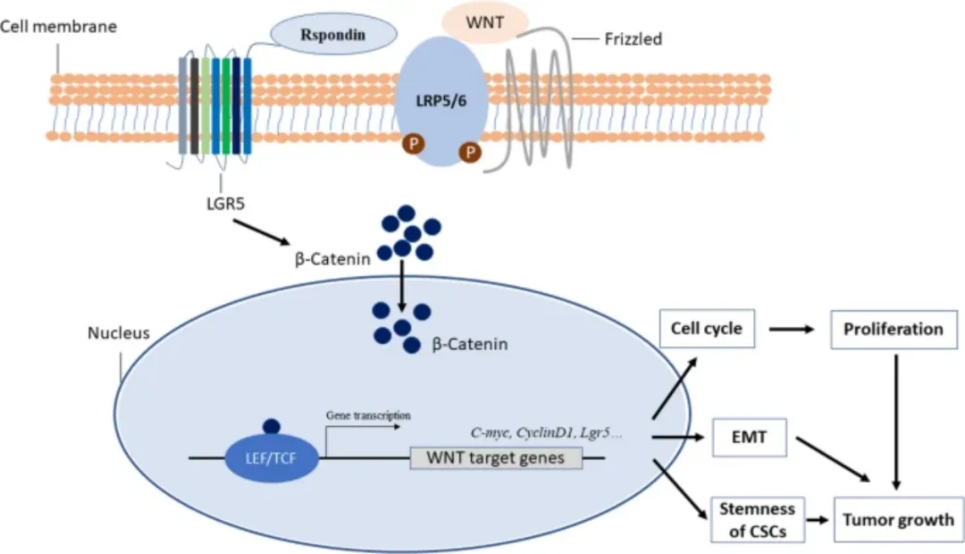 2)LGR5增强Wnt/β-catenin信号通路,从而刺激癌症干细胞增殖和自我更新。