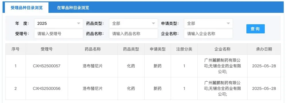 5 月 28 日,麓鹏制药研发的 1 类新药洛布替尼片(Rocbrutinib)上市申请获得 CDE 受理,用于治疗既往接受过 BTK 抑制剂治疗的成人套细胞淋巴瘤(MCL)患者,该申请已被纳入优先审评。