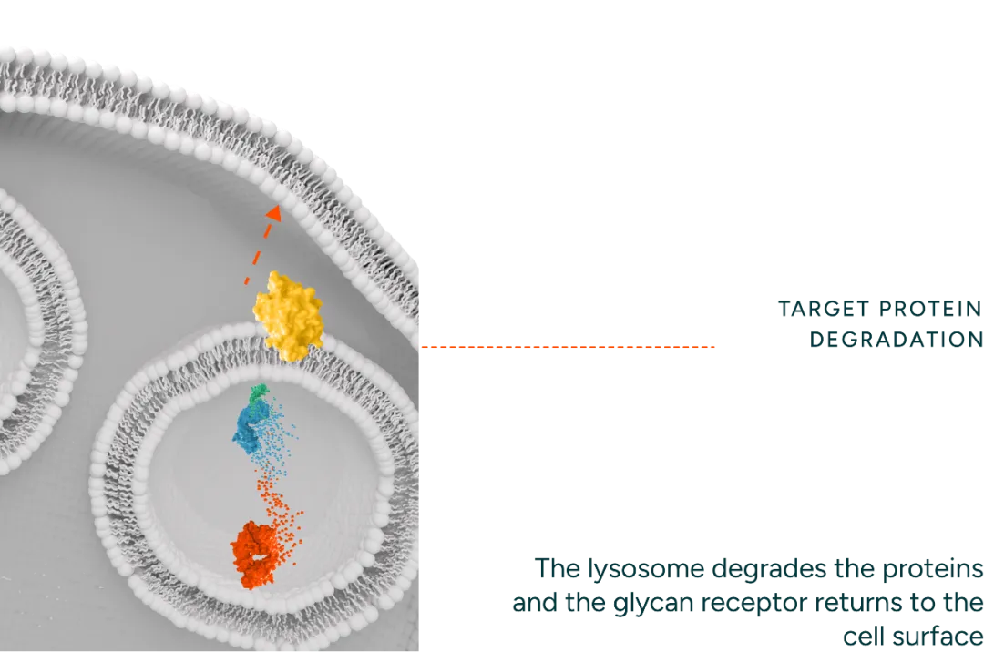 与 PROTAC 和分子胶等细胞内蛋白质降解剂不同,GlycoEra的技术可以靶向细胞外和膜蛋白靶标,从而为干预开辟新的靶标和治疗领域。其降解剂采用新型接合剂技术,可驱动与降解受体(ASGPR)的最佳结合,从而实现快速内化和再循环动力学。