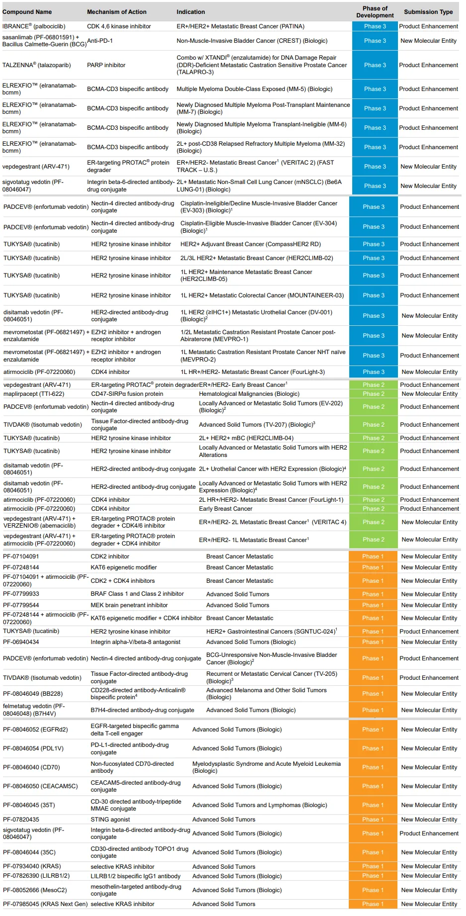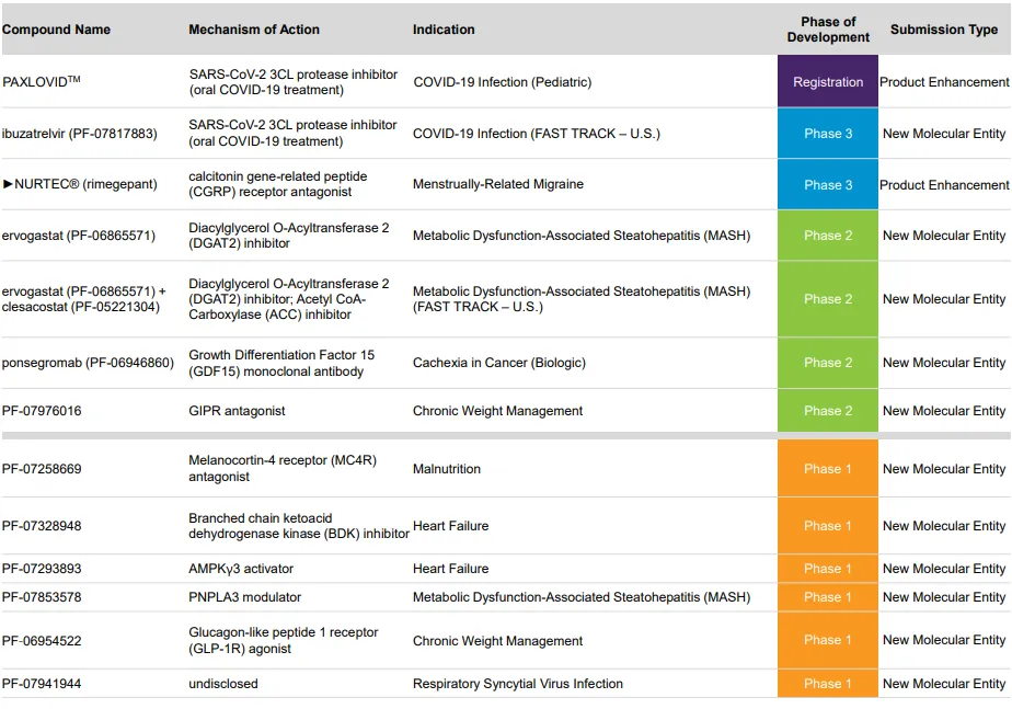 目前,辉瑞现有高增长的重点产品包括Padcev、Nurtec