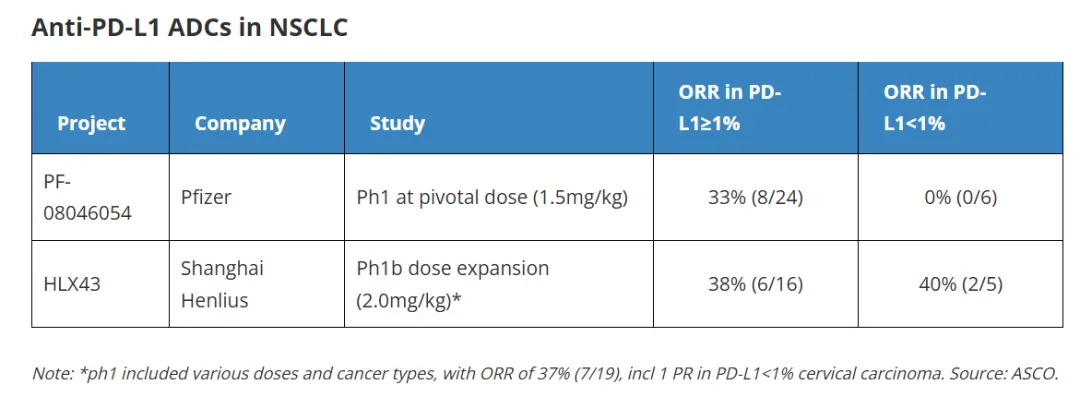 ADC也公布其临床数据,结果显示两者在PD-L1阳性的非小细胞肺癌患者中的响应率数据一致,但是复宏汉霖的HLX43在PD-L1低表达的患者仍然显示出40%的ORR,这可能与其独特的连接子设计,以及旁观者效应有关。