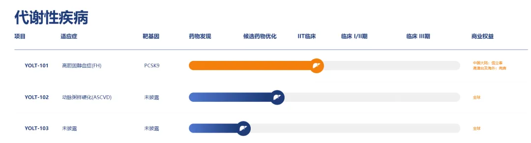 尧唐生物创始人兼首席执行官吴宇轩博士表示:“YOLT-101获FDA临床试验许可,不仅是尧唐生物全球临床布局的关键进展,也标志着体内基因编辑技术在心血管疾病治疗领域迈出了实质性的一步。YOLT-101有潜力实现‘一次给药、终生降血脂’,为杂合子家族性高胆固醇血症患者带来根本性的血脂控制方案,长期降低心血管疾病风险,重塑这一慢性疾病的治疗模式。甚至在未来,YOLT-101有望惠及普通高血脂病人,为动脉粥样硬化性心血管病(ASCVD)的终生治疗甚至预防带来希望。”YOLT-101注射液是尧唐生物自主研发的新一代体内碱基编辑药物,其创新性的采用了尧唐自主专利的腺嘌呤碱基编辑器YolBE(具体指hpABE5,由nCas与来自于Hafnia paralvei的全新脱氨酶融合产生),以及新型脂质纳米颗粒(LNP)作为递送载体。与传统CRISPR/Cas9技术依赖DNA双链断裂不同,YolBE可在不导致DNA双链断裂的前提下实现单碱基精准编辑,大幅降低染色体异常和脱靶风险。YOLT-101注射液药物能在DNA单碱基水平精准编辑并沉默PCSK9基因,下调血液中的PCSK9蛋白水平,抑制PCSK9介导的低密度脂蛋白受体(LDLR)降解,从而增强LDLR对低密度脂蛋白的摄取,有效清除血液中的低密度脂蛋白胆固醇(LDL-C),最终延缓和治愈家族性高胆固醇血症。2025年4月17日,国家药品监督管理局药品审评中心受理YOLT-101注射液按1类新药申报的临床试验申请。2025年6月4日,美国食品药品监督管理局(FDA)正式批准YOLT-101新药临床试验申请(IND)。产品管线