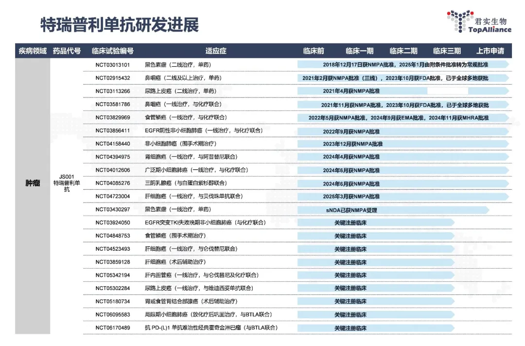 君实生物在这三个方向,虽然没有做到First in class,但均布局了差异化或潜在Me better项目,临床进度丝毫没有落下。