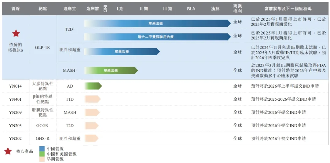 招股书显示,银诺医药是亚洲第一家及全球第三家商业化原研人源长效胰高血糖素样肽-1 (GLP-1)受体激动剂的公司。自2014年成立以来,该公司已建立了针对糖尿病和其他代谢性疾病的候选药物管线,包括正在研发用于治疗肥胖和超重及代谢功能障碍相关性脂肪性肝炎(MASH)的核心产品依苏帕格鲁肽α,以及五款处于临床前阶段的候选药物。