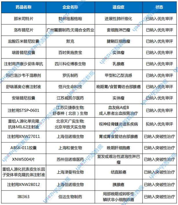 突破性治疗品种名单有6个品种,2个化药,4个生物制品。涉及结直肠癌、肝细胞癌等适应症。