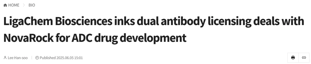 不过,在各方焦急等待该公告中第一个交易落地的同时,石药集团再次传来了好消息——旗下新石生物(NovaRock)将两款双抗授权给了LigaChem Bio(LCB),用于开发ADC。