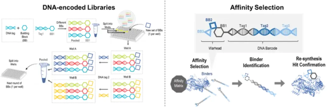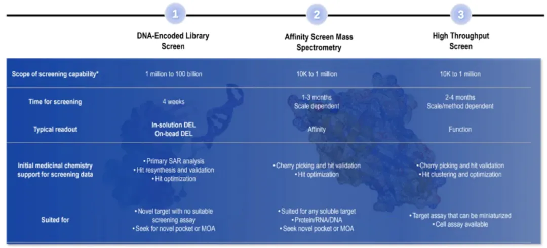 药明生物开发了一个全面的分子胶发现平台,配备了DNA编码文库 (DEL)、亲和选择质谱(ASMS)和高通量筛选(HTS)技术(图4)。