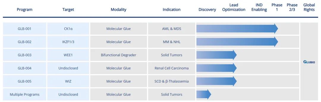 GLB-001是由格博生物研发的一款靶向酪蛋白激酶1α(CK1α)的分子胶蛋白降解剂,于2024年2月获得NMPA批准在髓系恶性肿瘤中开展临床研究,是国内首款进入临床开发阶段的靶向CK1α分子胶蛋白降解剂。