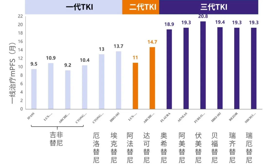 纵观历代EGFR-TKI的中位无进展生存期(mPFS)数据(图3):
