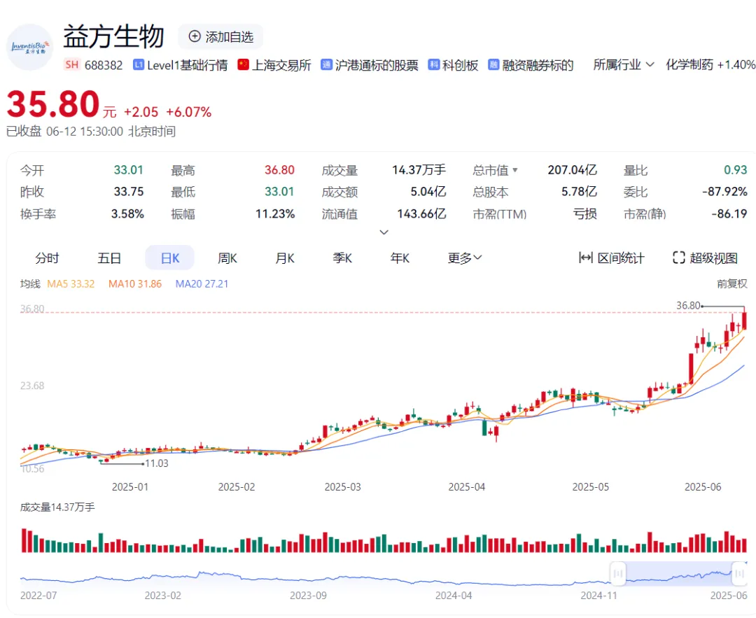 D-2570这颗银屑病治疗领域的新星,也是益方生物股价从2024年7月的6.5元,一路上涨到现在的35.8元的核心预期驱动。