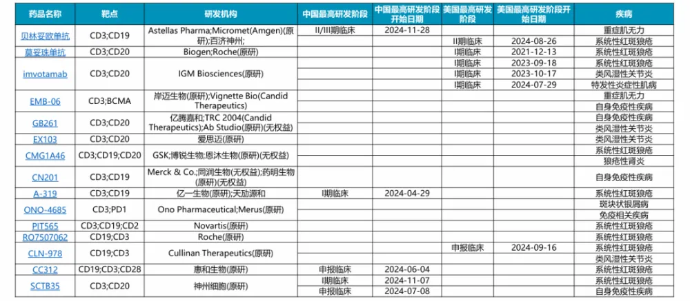 TCE双抗治疗自免疾病的在研竞争格局(截至2024年11月)丨来源:华福证券