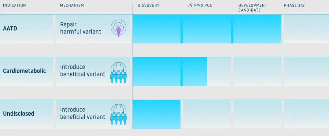 AIRNA的首个候选产品是AIR-001,目前准备进入治疗α-1抗胰蛋白酶缺乏症(AATD)的临床研究。AIR-001可精确修复SERPINA1突变(PiZ),以解决肺部和肝脏疾病的根本原因,并恢复功能性M-AAT的产生,且具备皮下给药的便利性和良好的耐受性。