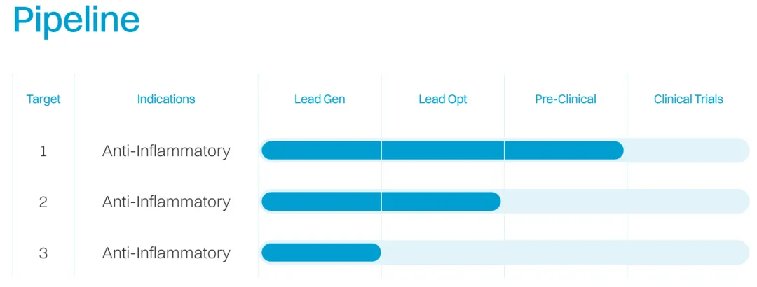 公司CEO 董庆博士拥有超过25年的生物医药行业经验,曾是XinThera的创始人兼总裁,XinThera在2023年5月被吉利德收购,亦是小分子炎症生物技术FronThera的创始人(被Foresite Capital收购其TKY2抑制剂后改名Alumis后在美股IPO),并在2021年2月成功收购后担任其总裁和首席战略官。在此之前,董庆博士曾担任恒瑞医药的首席战略官、武田和Triad Therapeutics担任药物化学家。