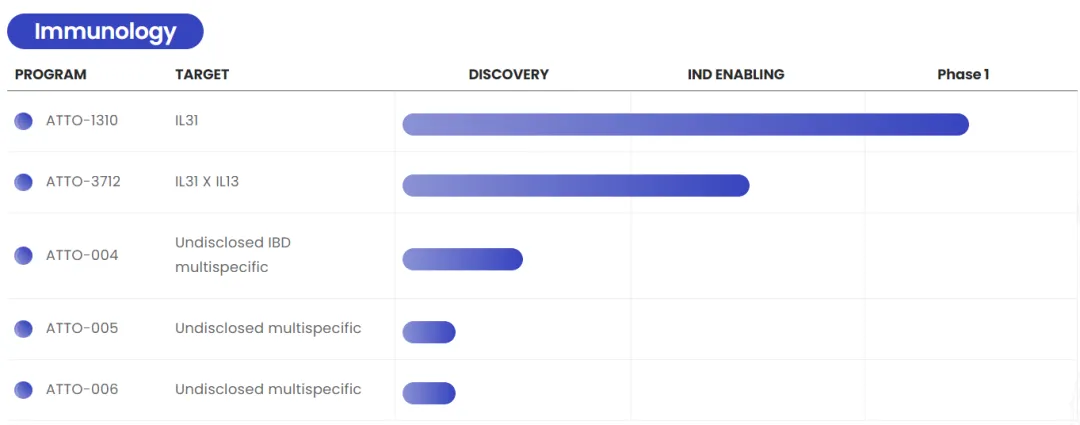 早期研发管线。ATTO-004,一种针对IBD的多特异性候选药物,以及另外两个多特异性发现阶段项目。