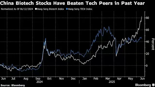 彭博社称,今年1月至今,在投资者对外国公司授权引进中国创新药的数十亿美元交易的热情下,恒生生物科技指数已飙升超过60%。其反弹速度甚至超过了中国科技股17%的涨幅,后者是由DeepSeek1月发布突破性人工智能应用程序所驱动的。