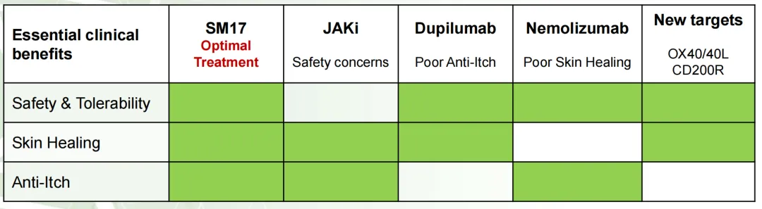 正如中国抗体管理层所介绍的那样,IL-25抗体SM-17确实在未来可能成为集皮损清除、抗瘙痒和安全耐受特点于一身的AD治疗“上佳方案”。