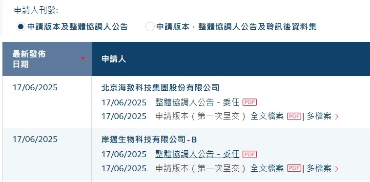 2025年6月17日,港交所官网显示,岸迈生物递交港交所上市申请,中信证券和招银国际为联席保荐人。